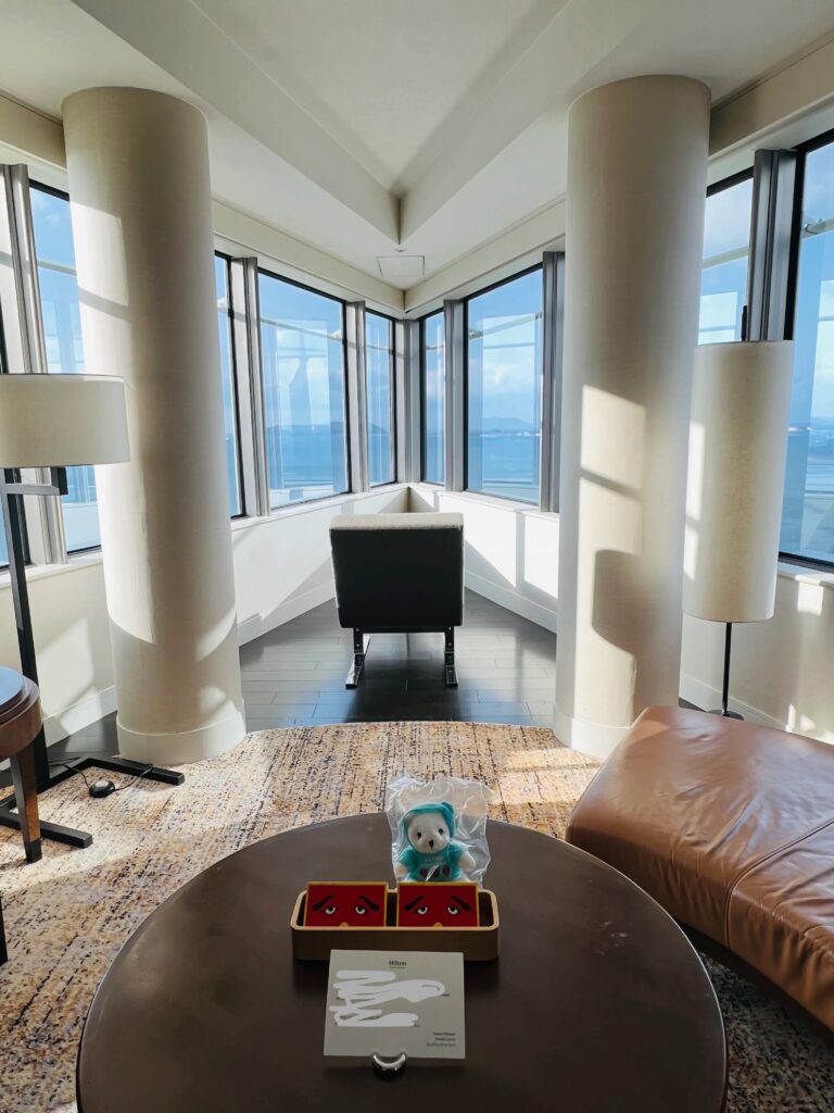 宿泊の3日前に有償でパノラミックスイートへアップグレードできることがわかり、思い切ってアップグレード!!ヒルトン福岡シーホークは全室オーシャンビューですが、その中でも最前列に位置するこのスイートルームは特に希少性の高い部屋として知られています。