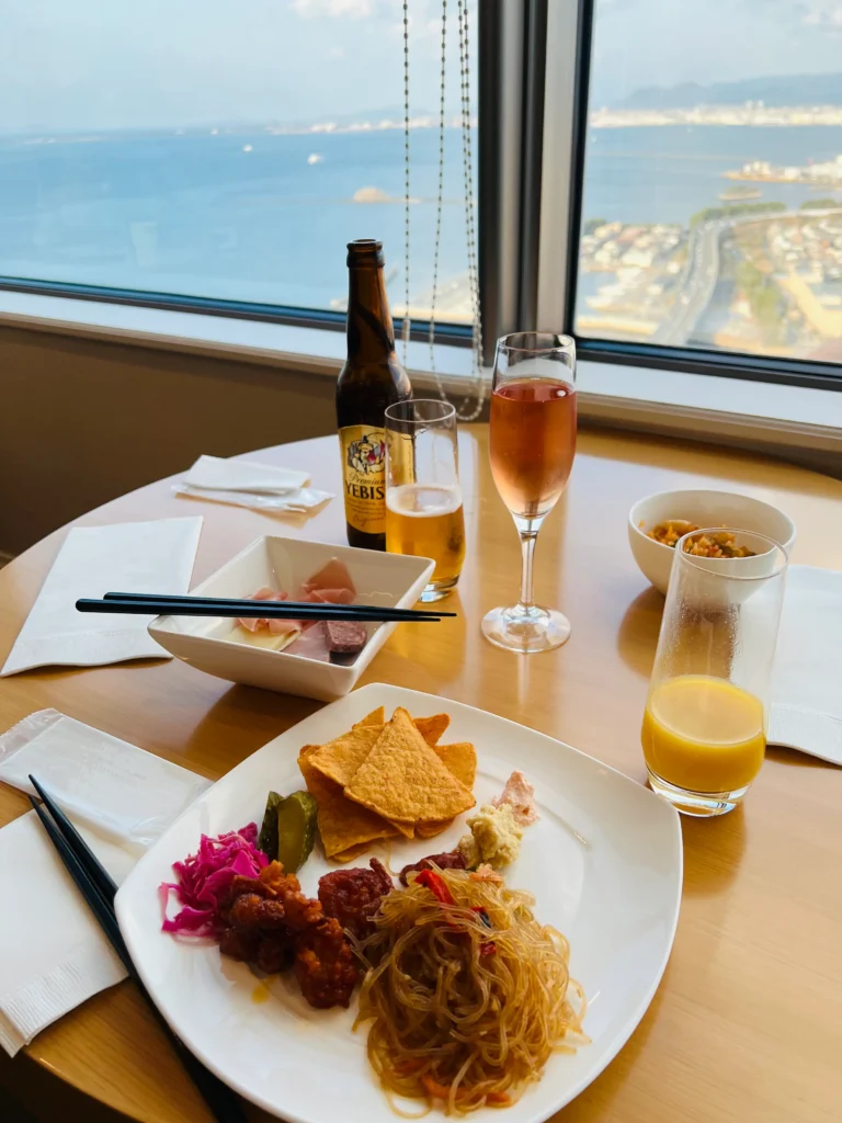 チャプチェをおかわりしたかったのですが、夜はバー&ダイニング CLOUDSで食事予定だったため、控えめにしました。ラウンジが20時まで使えるので、ゆっくりドームの夜景を見ながら過ごすのもありですね。